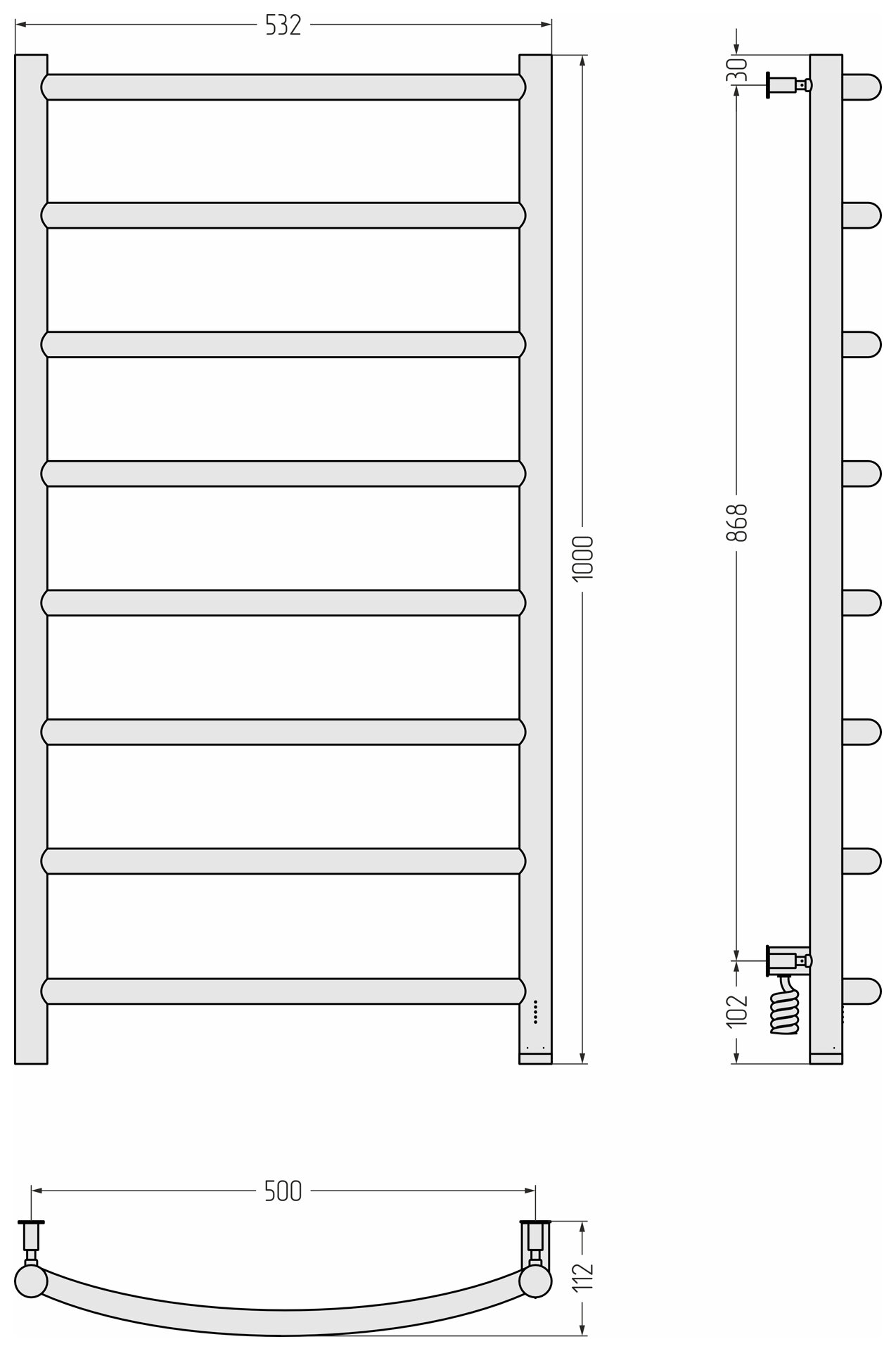 Полотенцесушитель электрический Сунержа Галант 4.0 1000х500 МЭМ левый Матовый чёрный