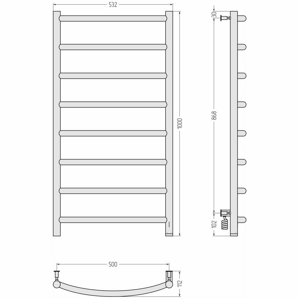 Полотенцесушитель электрический Сунержа Галант 4.0 600х500 МЭМ левый Без покрытия