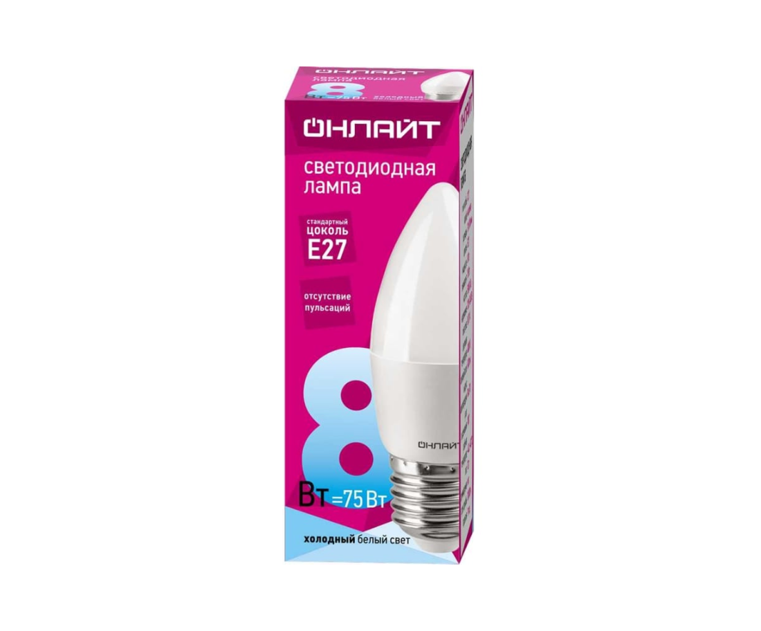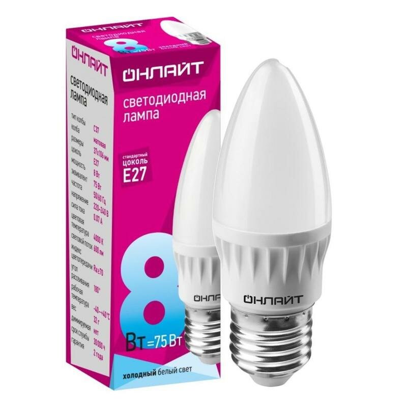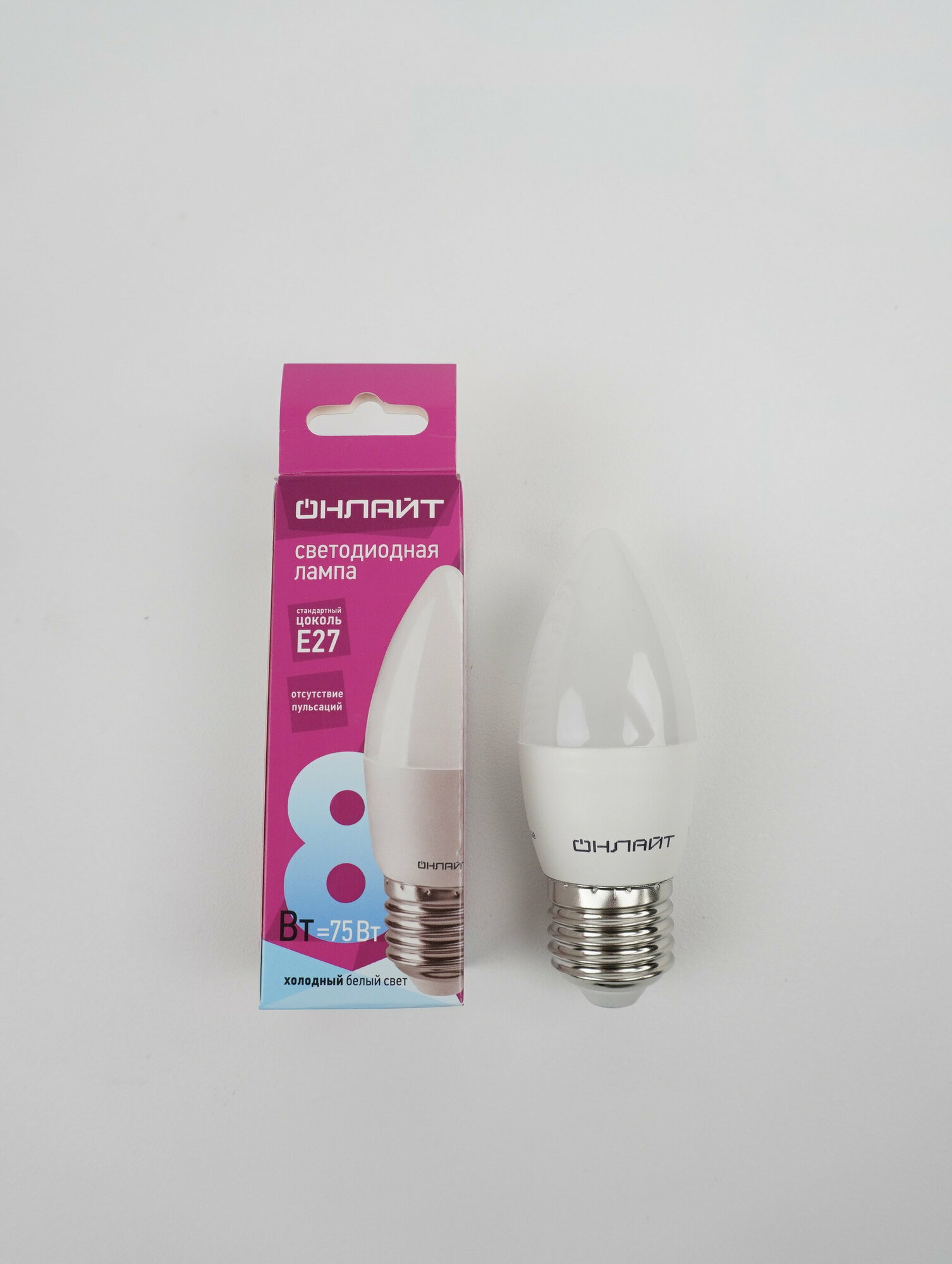 Светодиодная лампа Онлайт свеча 1хЕ27х8 Вт холодный свет
