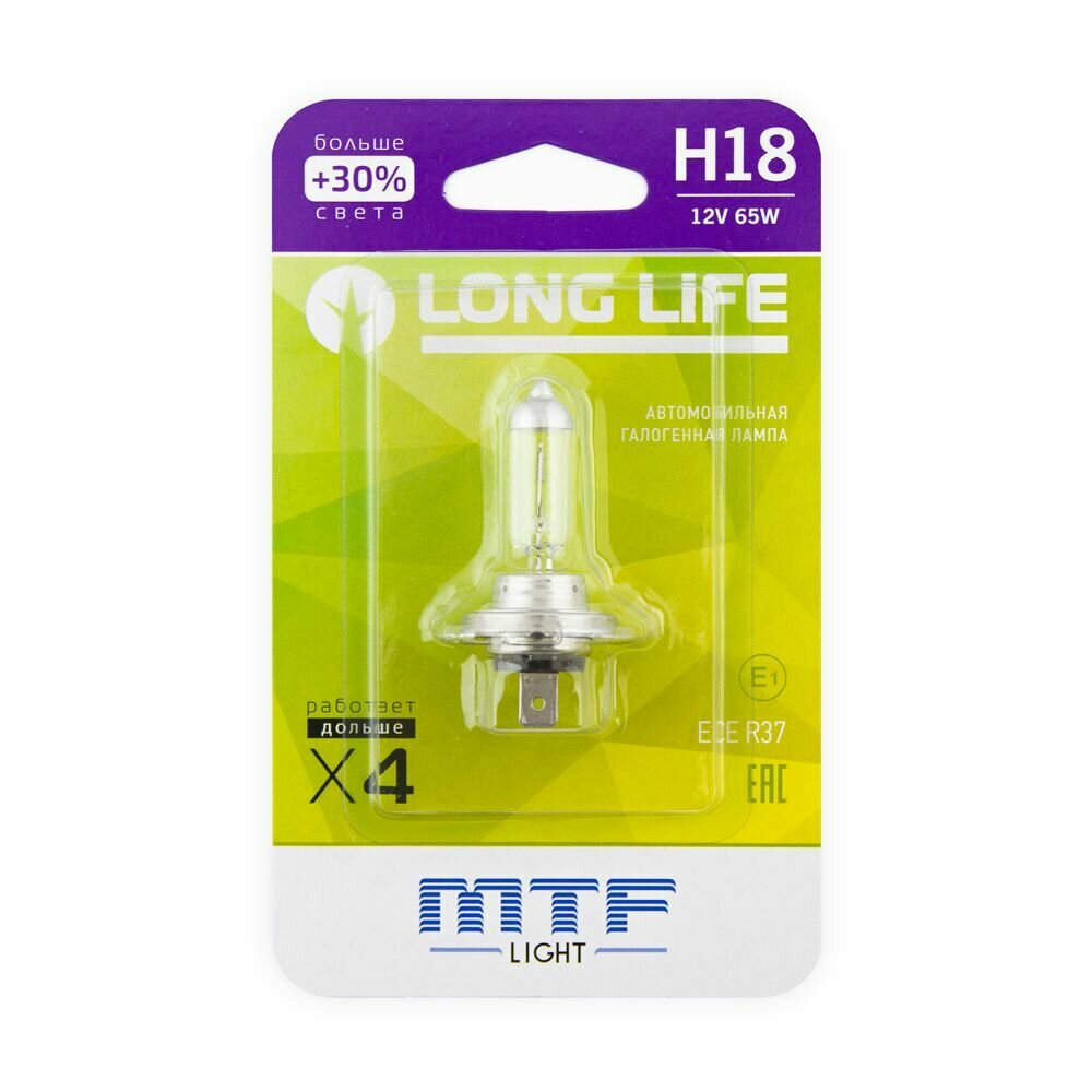 Галогенная лампа автомобильная H18 12V 65W LONG LIFE x4 блистер, MTF LIGHT HLL1218B (1 шт.)