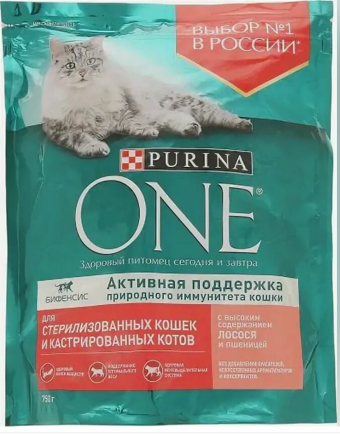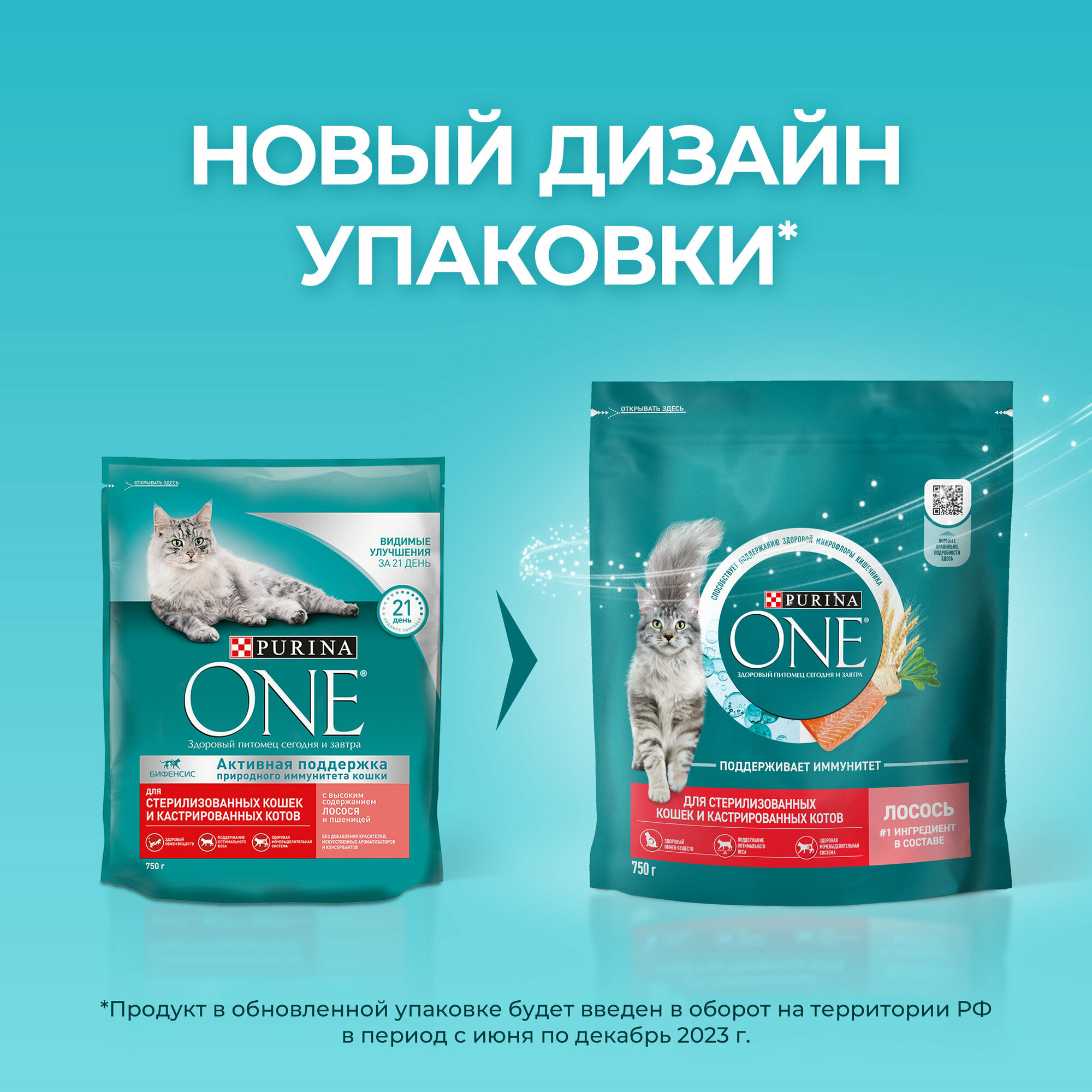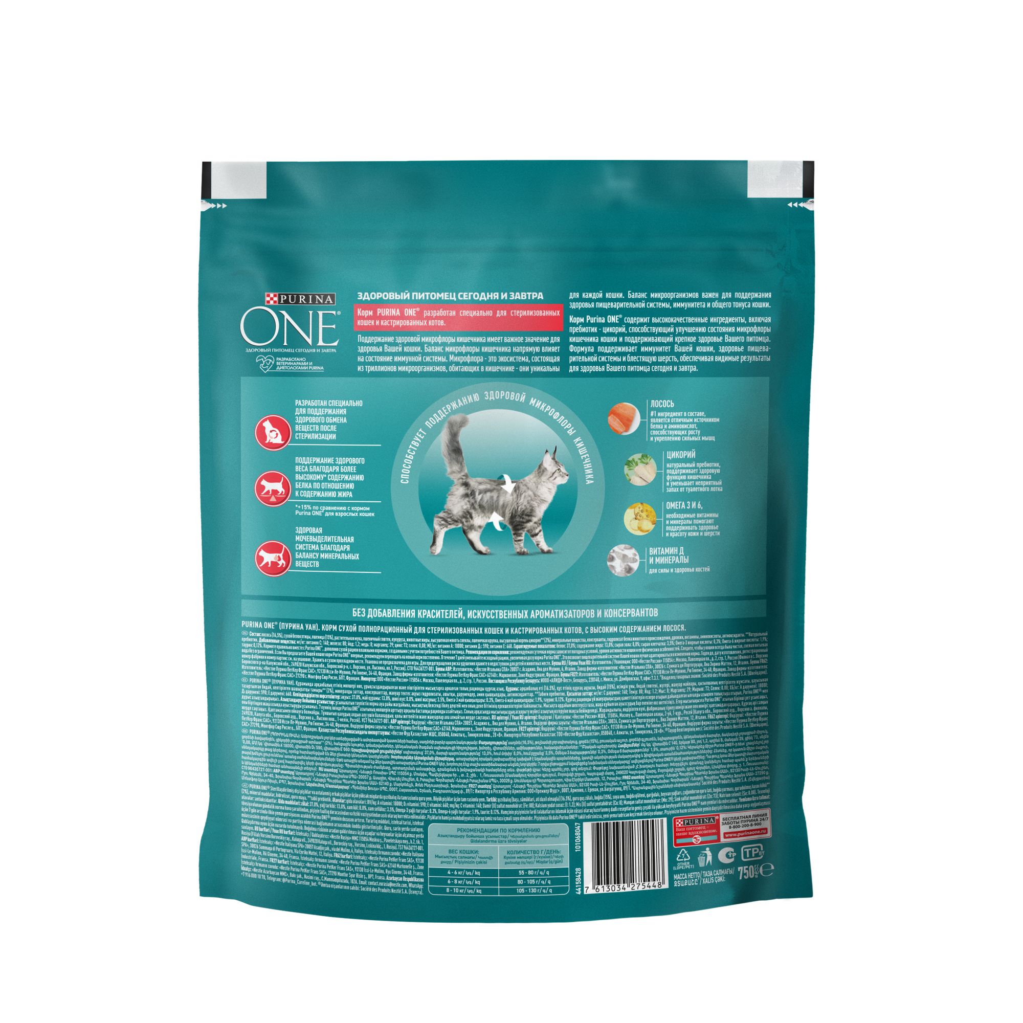 Корм c лососем 750 г Purina One сухой, для стерилизованных кошек, 1 шт
