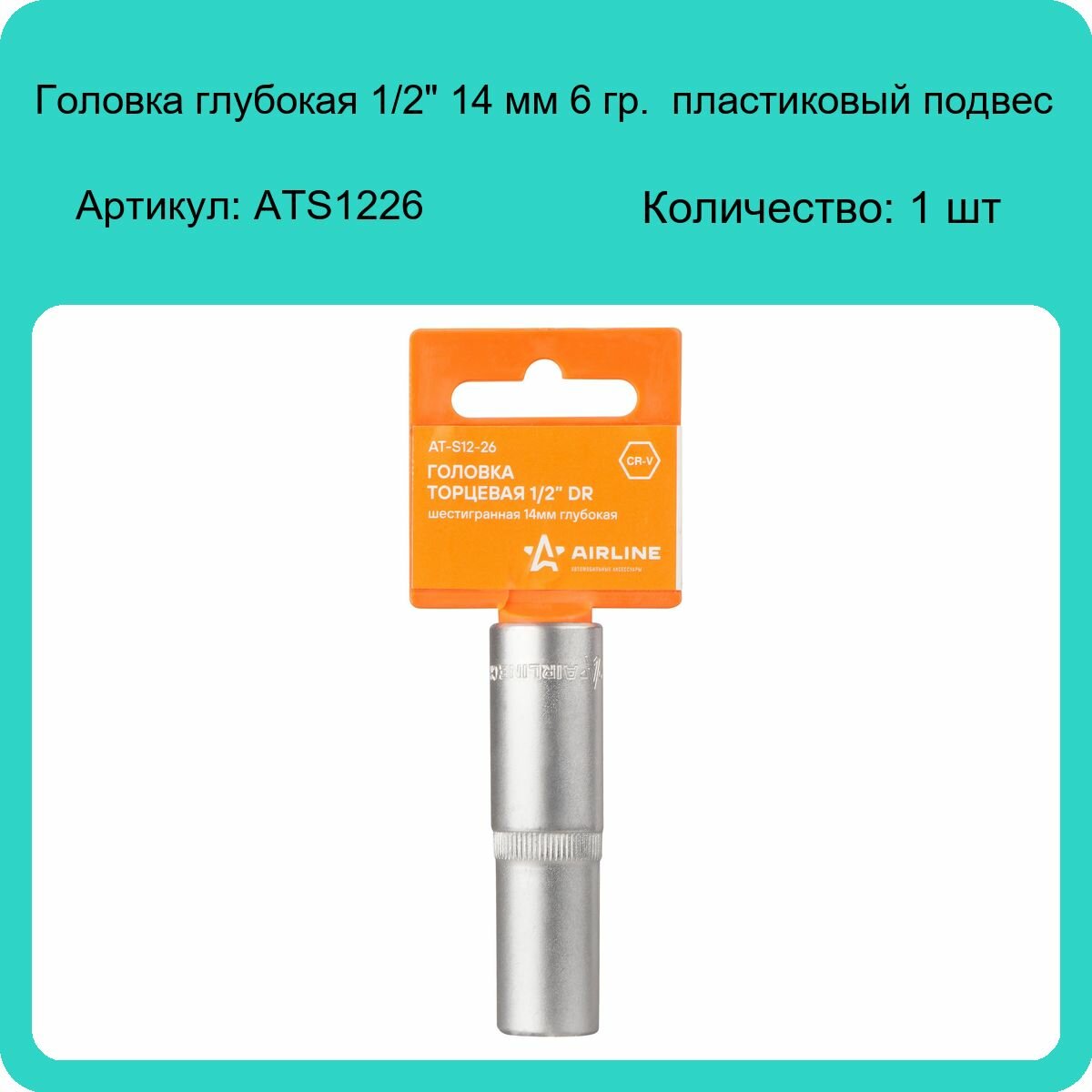 Головка Торцевая 1/2 Dr Шестигранная 14Мм Глубокая Пласт. Подвес (At-S12-26) AIRLINE арт. at-s12-26
