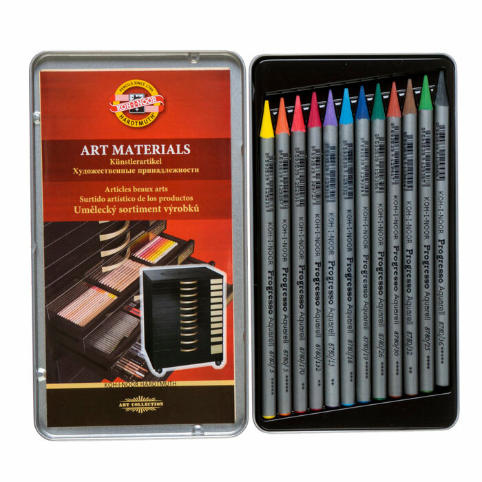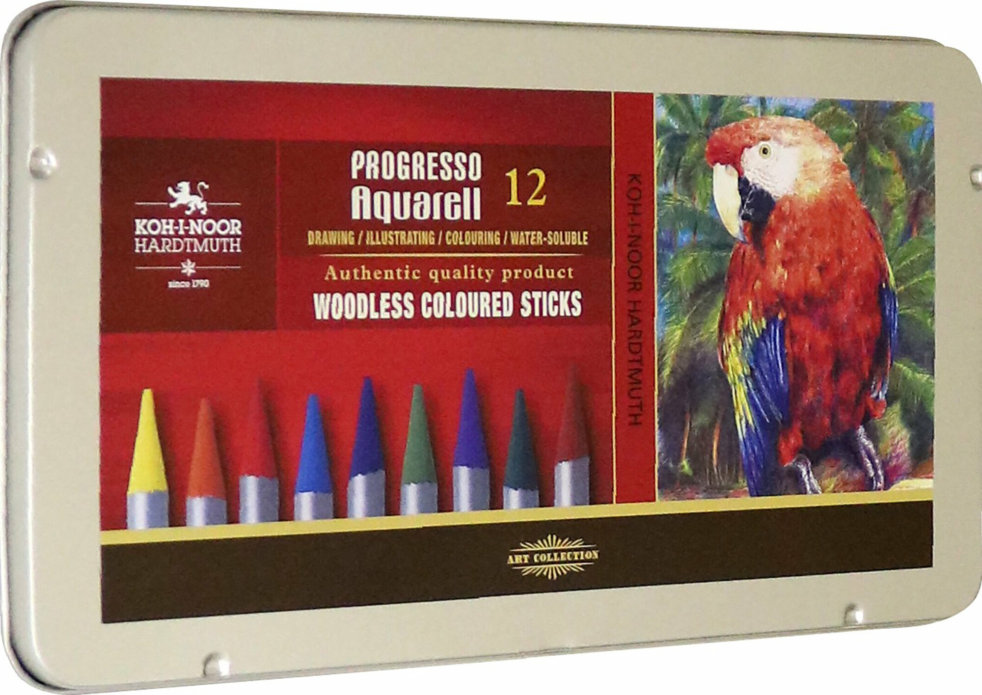 Карандаши цветные Koh-i-Noor Progresso Aquarell 8782 8782012001PL, круглый, 12 цв., коробка металлическая