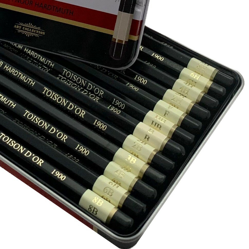 Набор чернографитных (простых) карандашей Koh-I-Noor Toison D'or 1902 Art (8B-8H, заточенные) метал. пенал, 12шт. (1902012009PL)