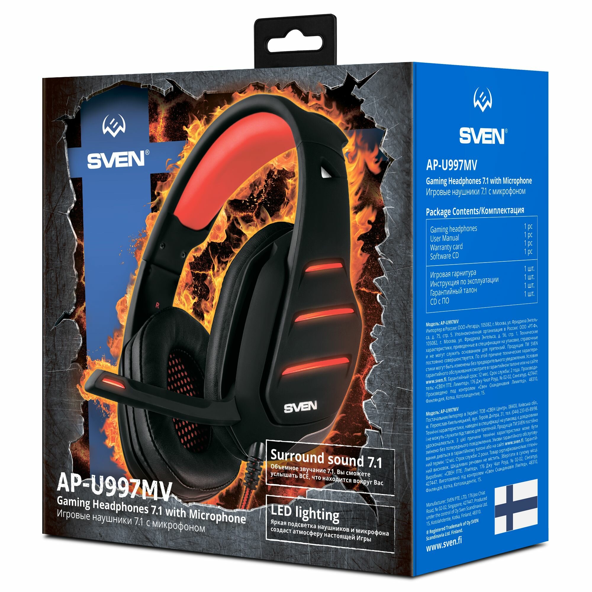 Игровая гарнитура SVEN AP-U997MV, черный-красный с LED подсветкой и виртуальным звуком 7.1