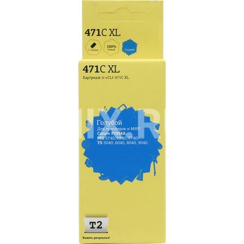 T2 Расходные материалы CLI-471C XL Картридж IC-CCLI-471C XL для Canon PIXMA MG5740 6840 7740 TS5040 6040 8040, голубой, с чипом