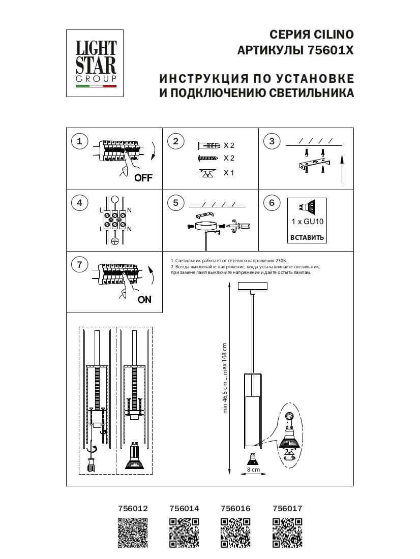 Светильник подвесной Lightstar Cilino, 756057, 200W, GU10