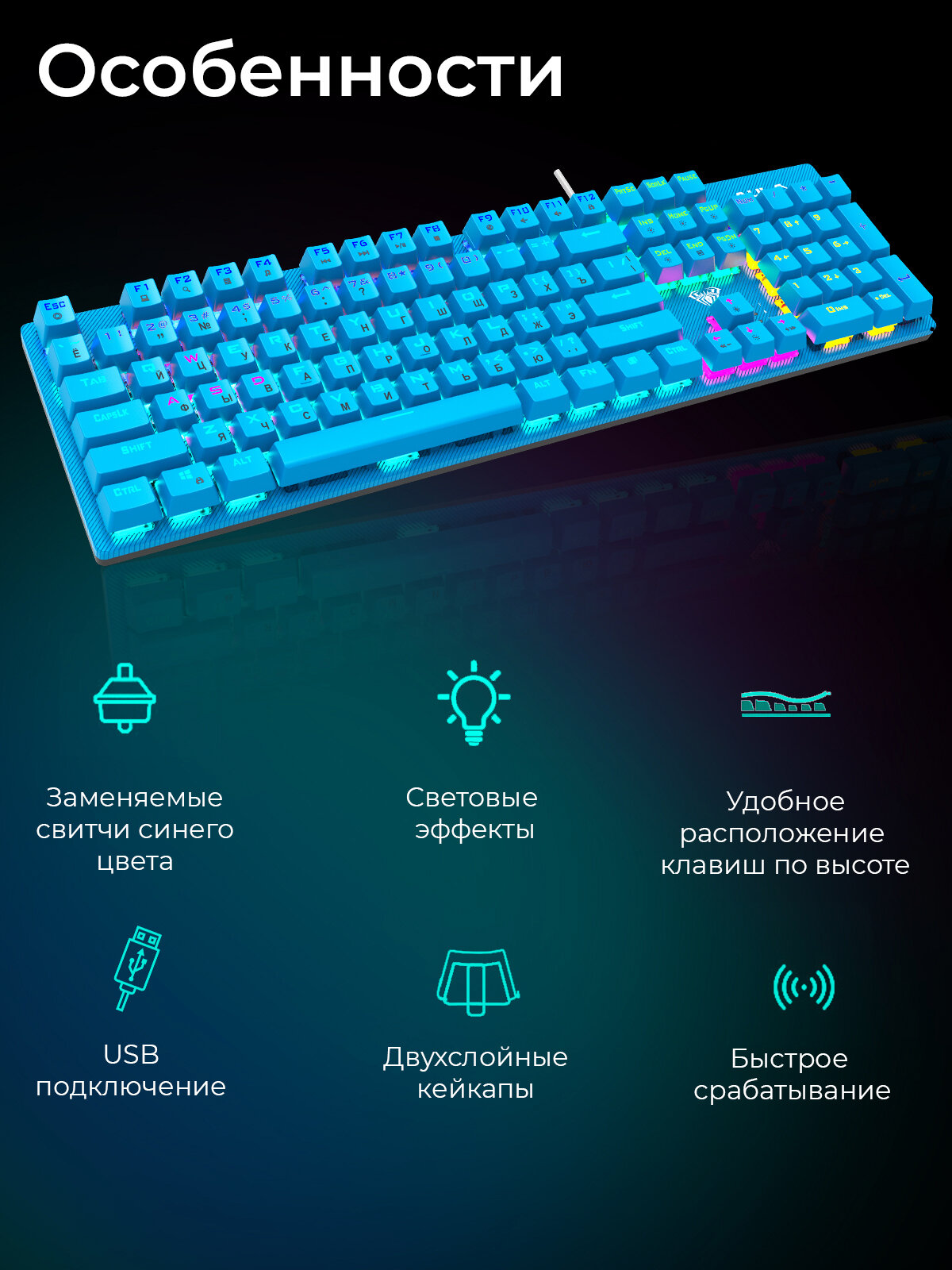 СохранитьКлавиатура Aula S2022 Blue проводная Blue (80003637) интересное: