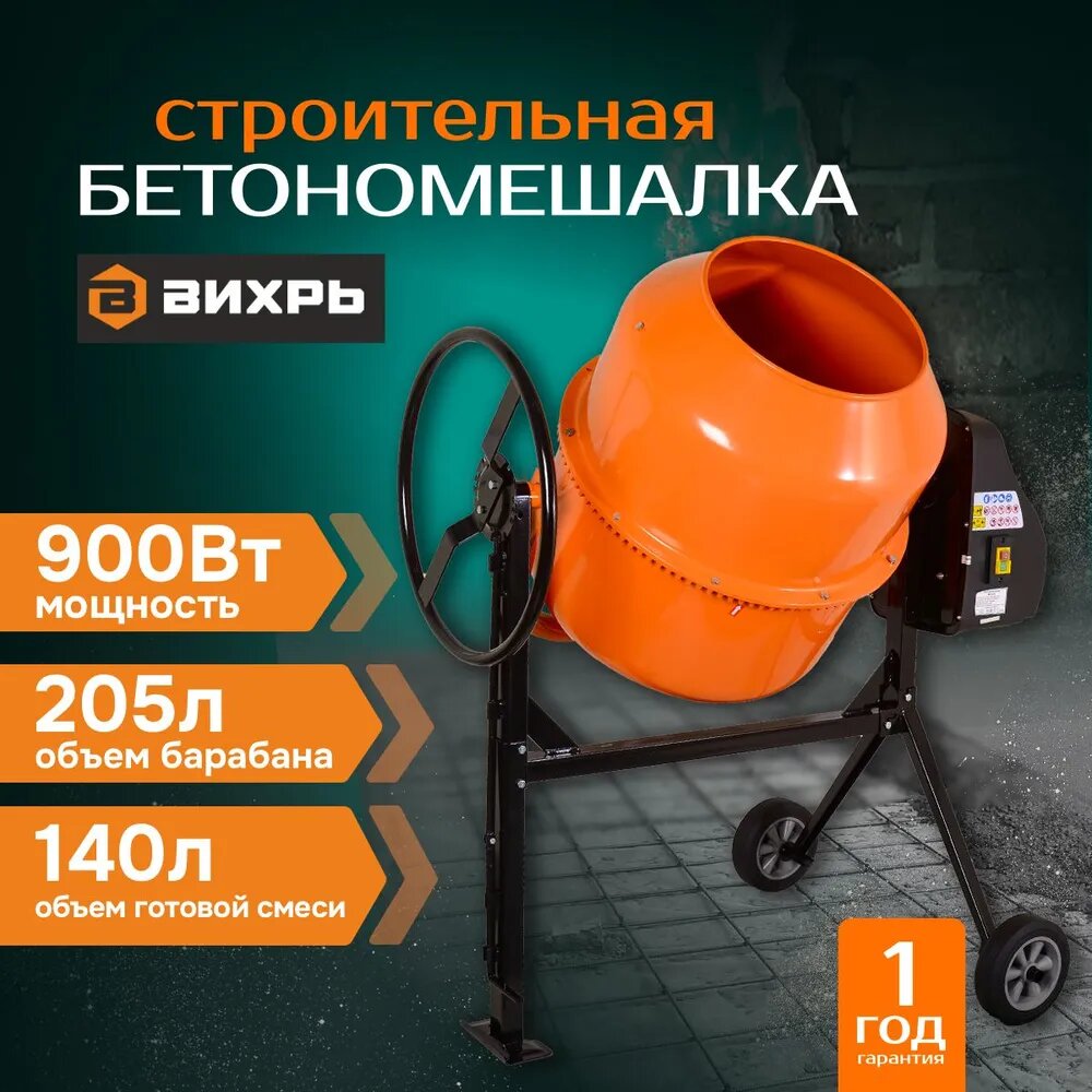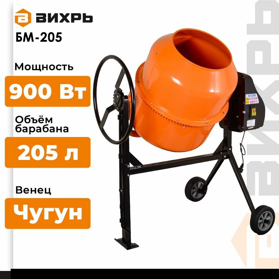 Бетономешалка Вихрь БМ-205, 0.9 кВт, 200 л
