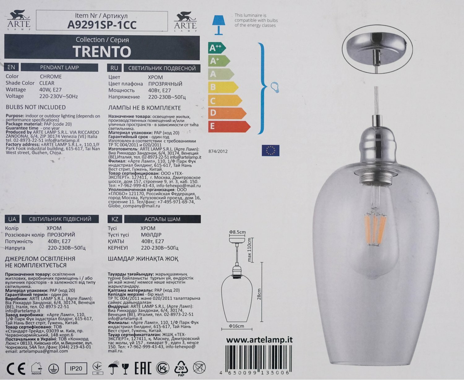 Ниже Вы можете прочитать отзывы на Светильник Arte Lamp Trento A9291SP-1CC, E27, 40 Вт, кол-во ламп: 1 шт., цвет: хром, ознакомится с подробными характеристиками, посмотреть интересные обзоры и фотографии на Светильник Arte Lamp Trento A9291SP-1CC, E27, 40 Вт, кол-во ламп: 1 шт., цвет: хром.