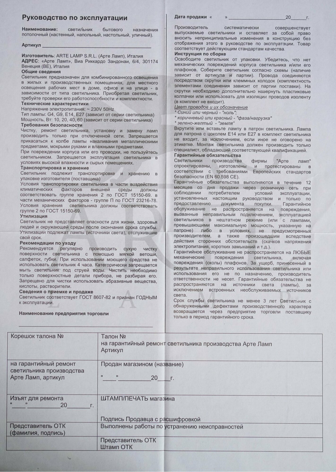 | Производитель | Arte Lamp |