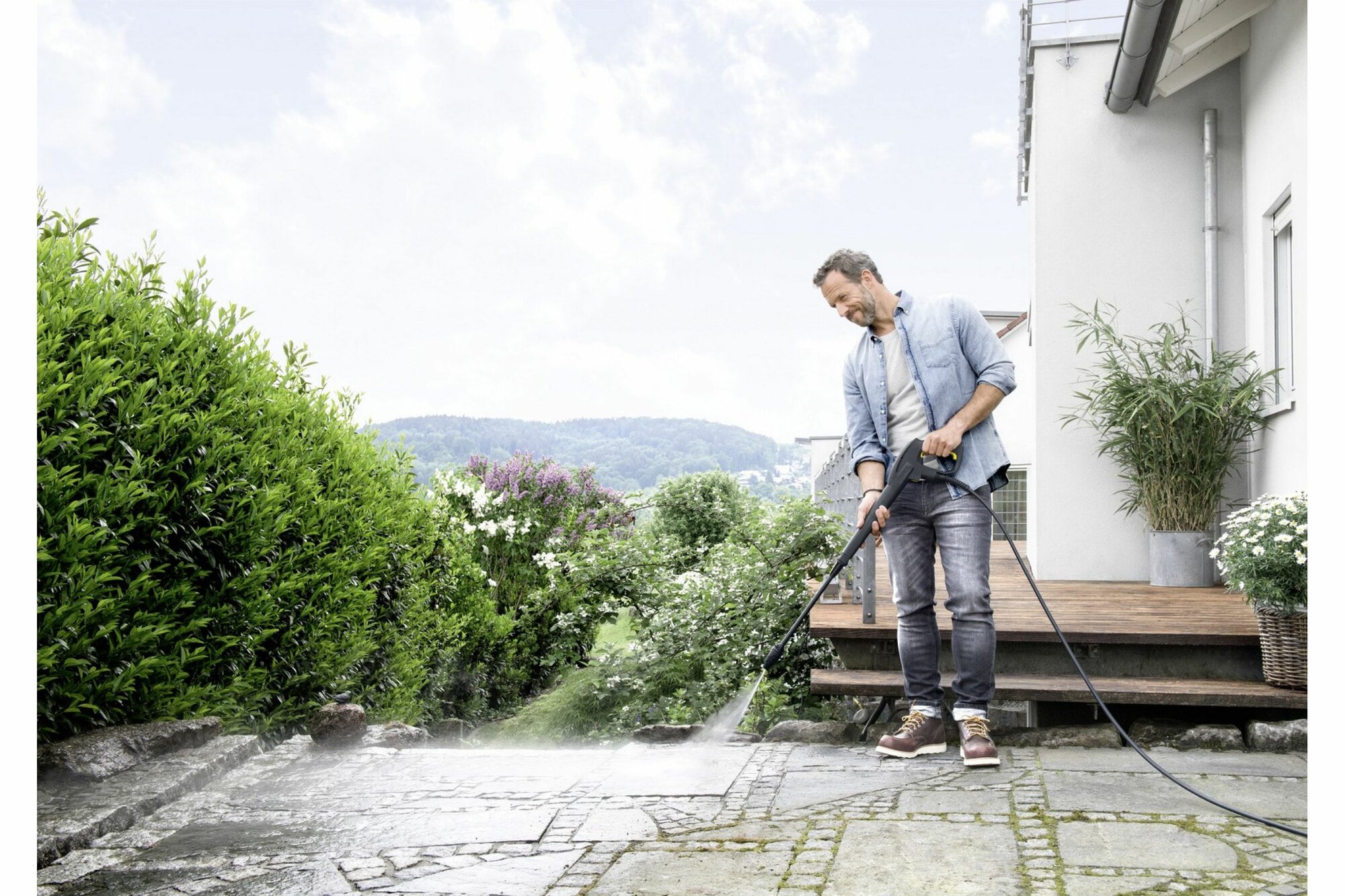 | Плюсы: | Достаточно мощный напор воды для моих задач - мытьё плитки и брусчатки на даче, мытьё машины. |