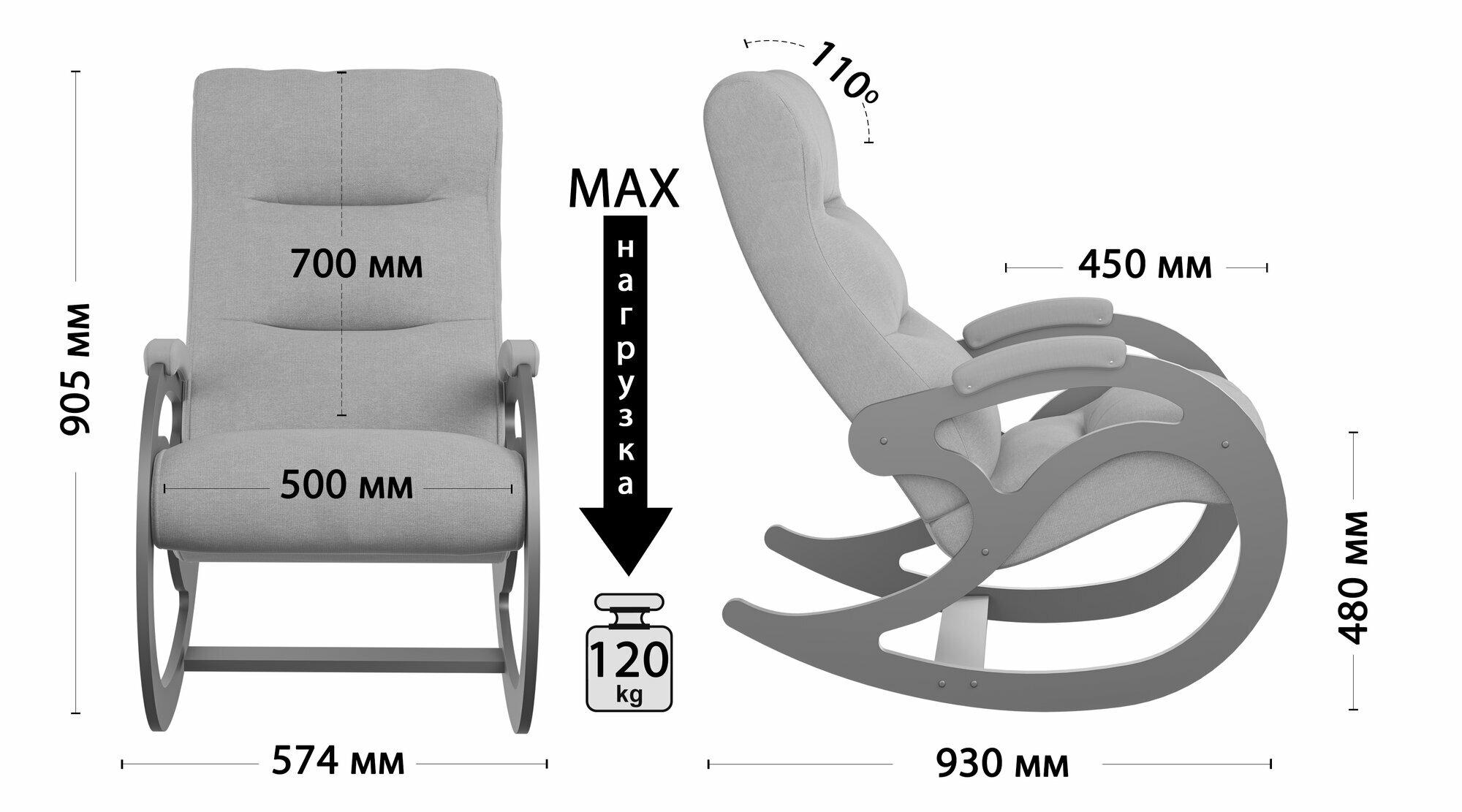 Кресло-качалка для дома и дачи Glider Каула М в такни микровелюр, цвет серый