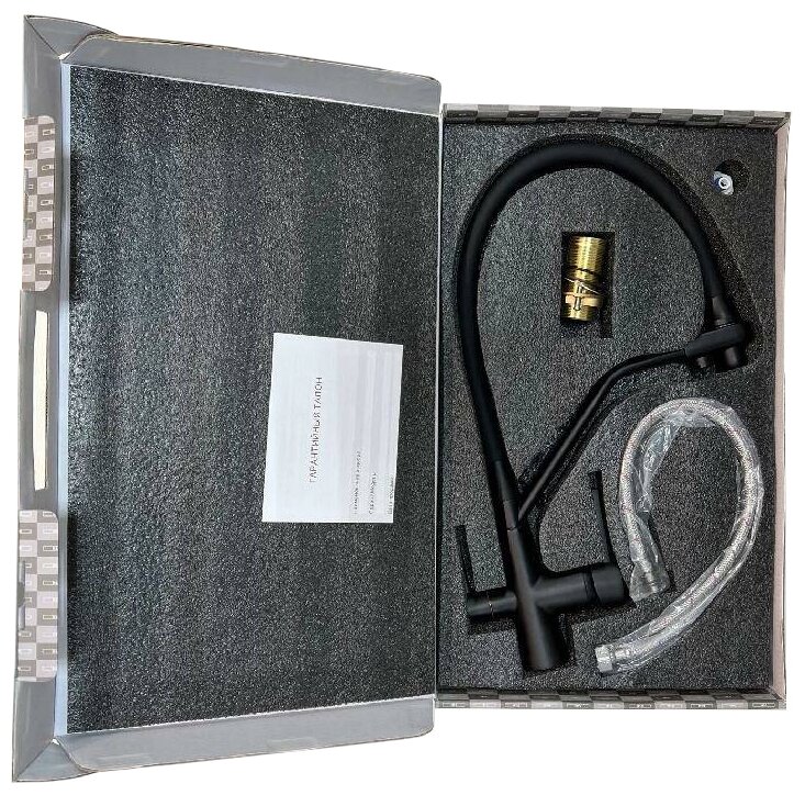 Смеситель для кухни D-lin D159317-A с фильтром для питьевой воды, гибким поворотным изливом, черный (матовый)