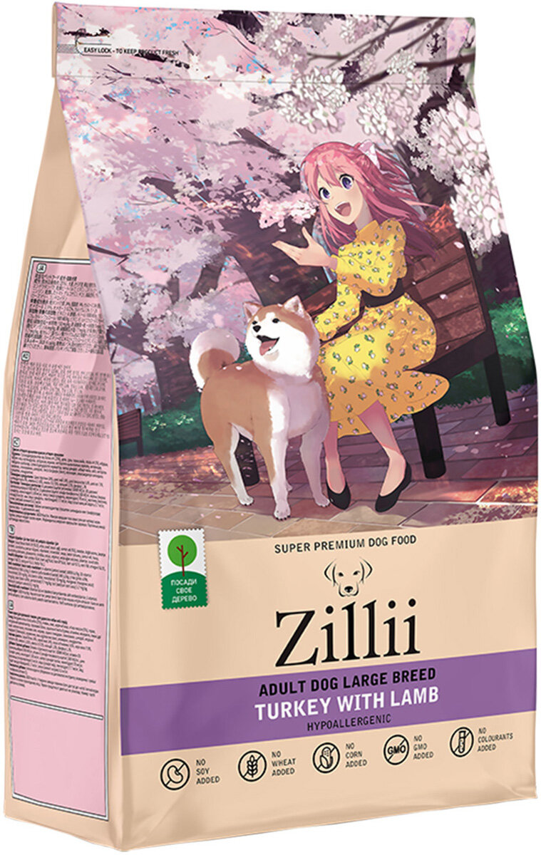 ZILLII (Зилли) Adult Dog Large Breed корм сухой для взрослых собак крупных пород 3 кг Индейка с Ягнёнком, гипоаллергенный