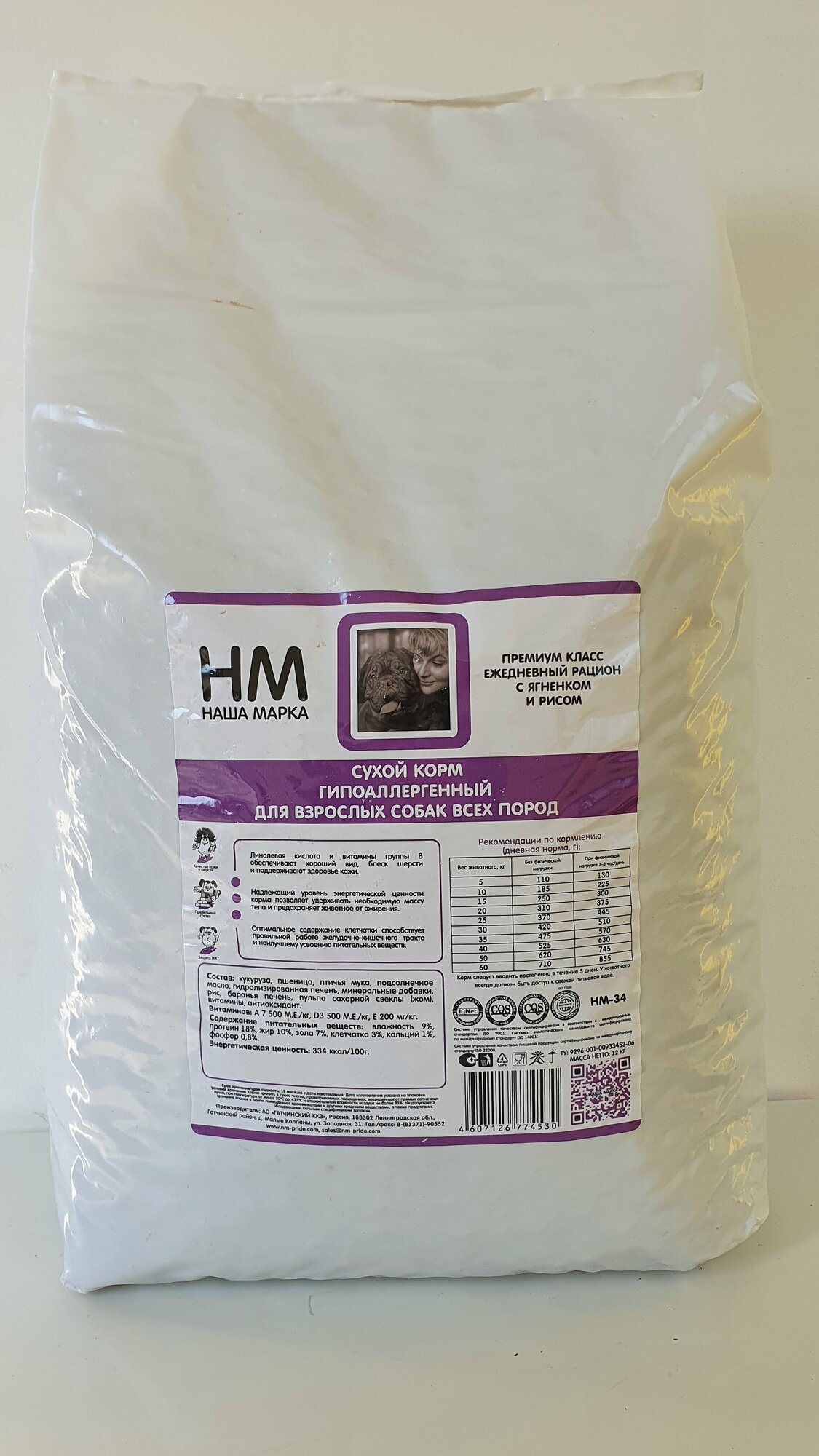 Сухой полнорационный корм "Наша Марка", гипоаллергенный, для взрослых собак всех пород, Ягненок и рис, 12 кг