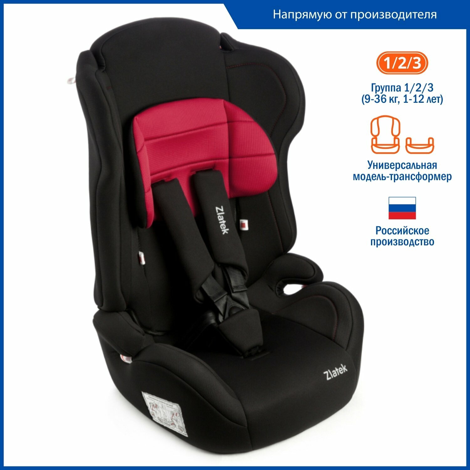 Автокресло Zlatek ATLANTIC New, 1+2+3 (9-36кг) (красный Гламур)