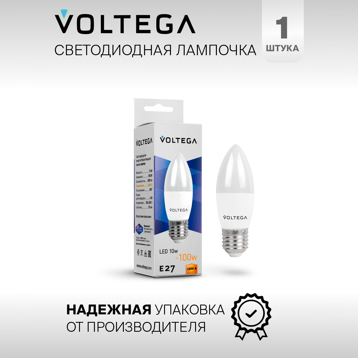 Лампочка светодиодная Voltega Simple LED 037 E27 10W 2800 К