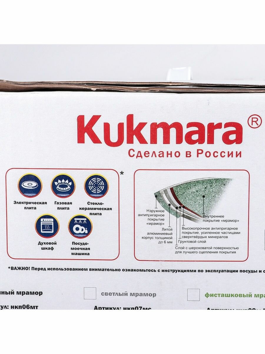 Набор кухонной посуды №6 с антипригарным покрытием, Kukmara нкп06мт линия "Мраморная" (темный мрамор)