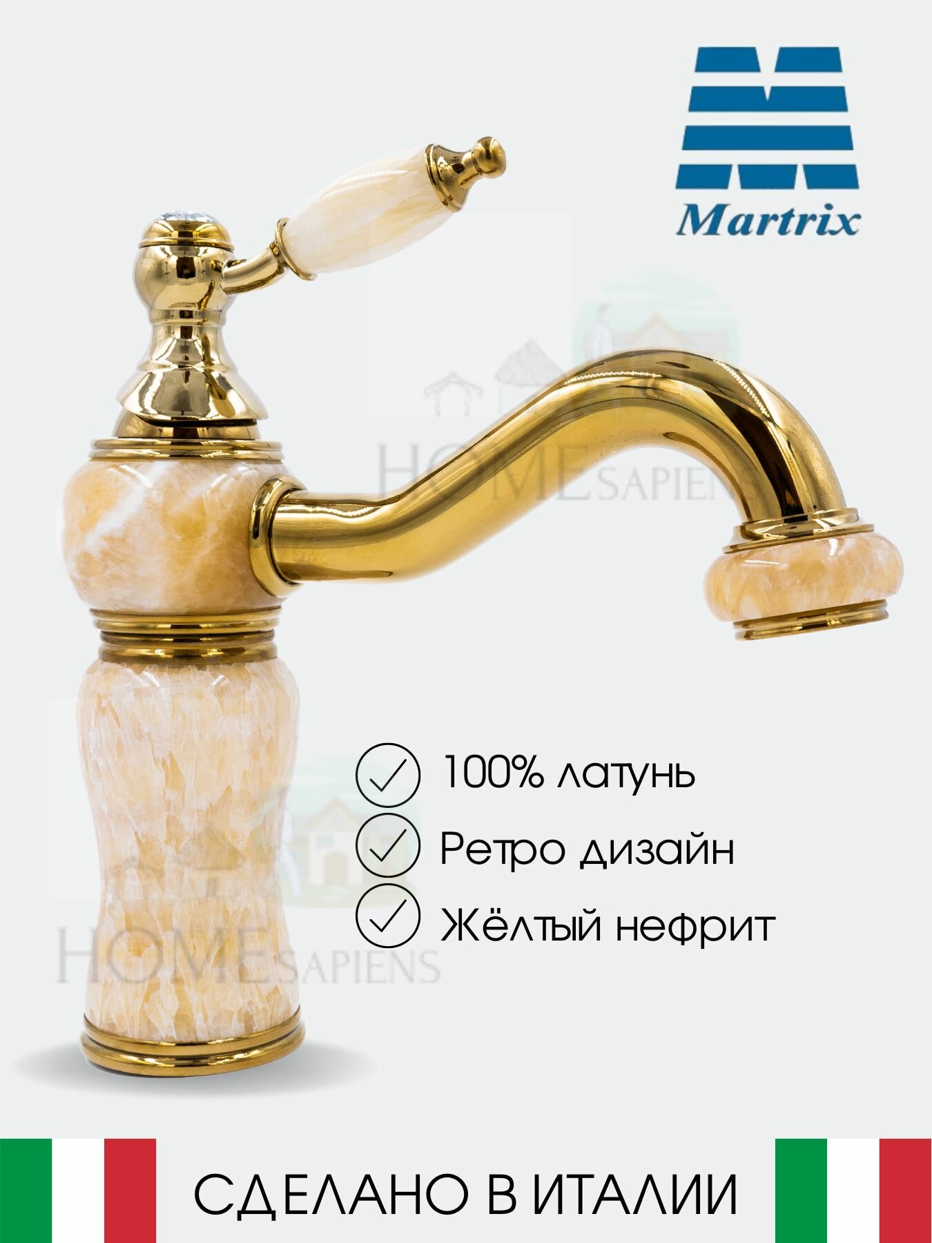 Смеситель для раковины MATRIX SMF-323170/GY ретро жёлтыйй нефрит