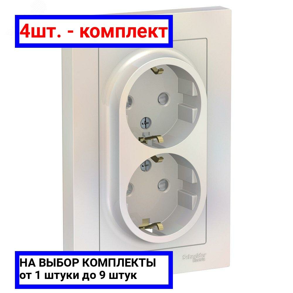 Купить 4шт. - Розетка ATLASDESIGN двойная с заземлением со шторками 16А в сборе жемчуг / Systeme Electric; арт. ATN000426; оригинал / - комплект 4шт