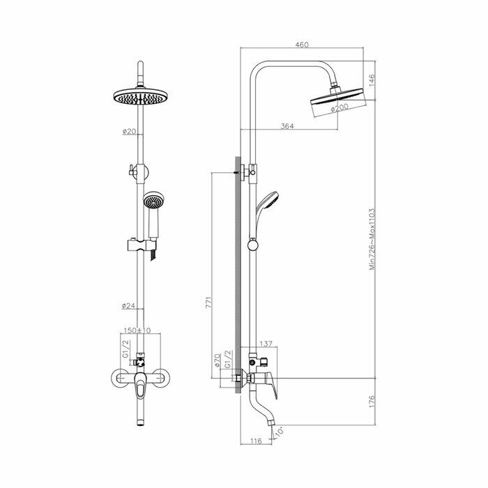 Душевая система Decoroom DR21 с верхним душем d200 мм с лейкой d83 мм со смесителем хром (DR21071)