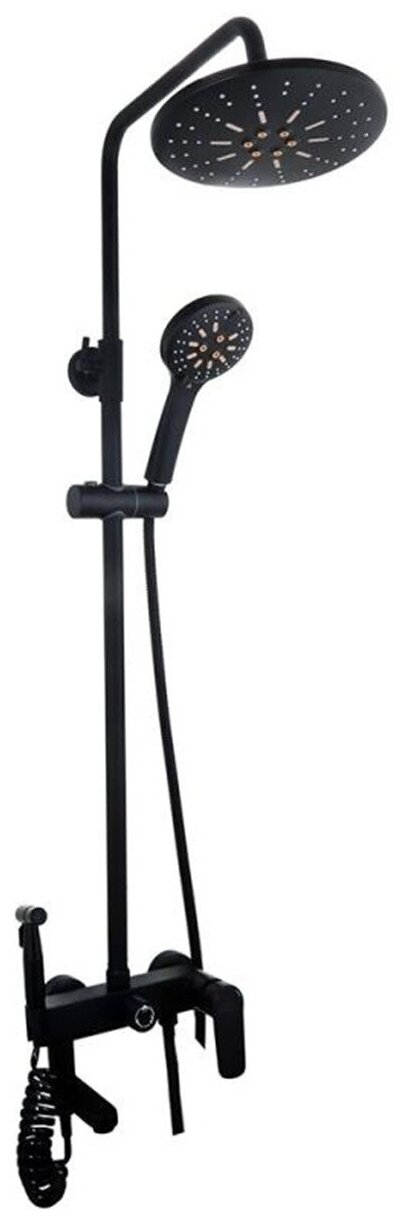 FASHUN Душевая система для ванны латунная с изливом, тропическим душем, душевой лейкой и гигиеническим душем, черная A2452-7