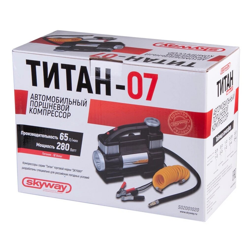 Компрессор (65 л/мин) 10 Атм "SKYWAY" Титан-07 (с крокодилами, с фонарем) SKYWAY S02001020 | цена за 1 шт
