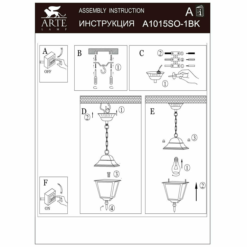 | Подробная комплектация | Уличное освещение Arte Lamp A1015SO-1BK |