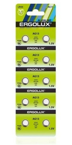 Батарейки для часов Ergolux AG13 BL-10 AG13-BP10 LR44/LR1154/A76/357 14324