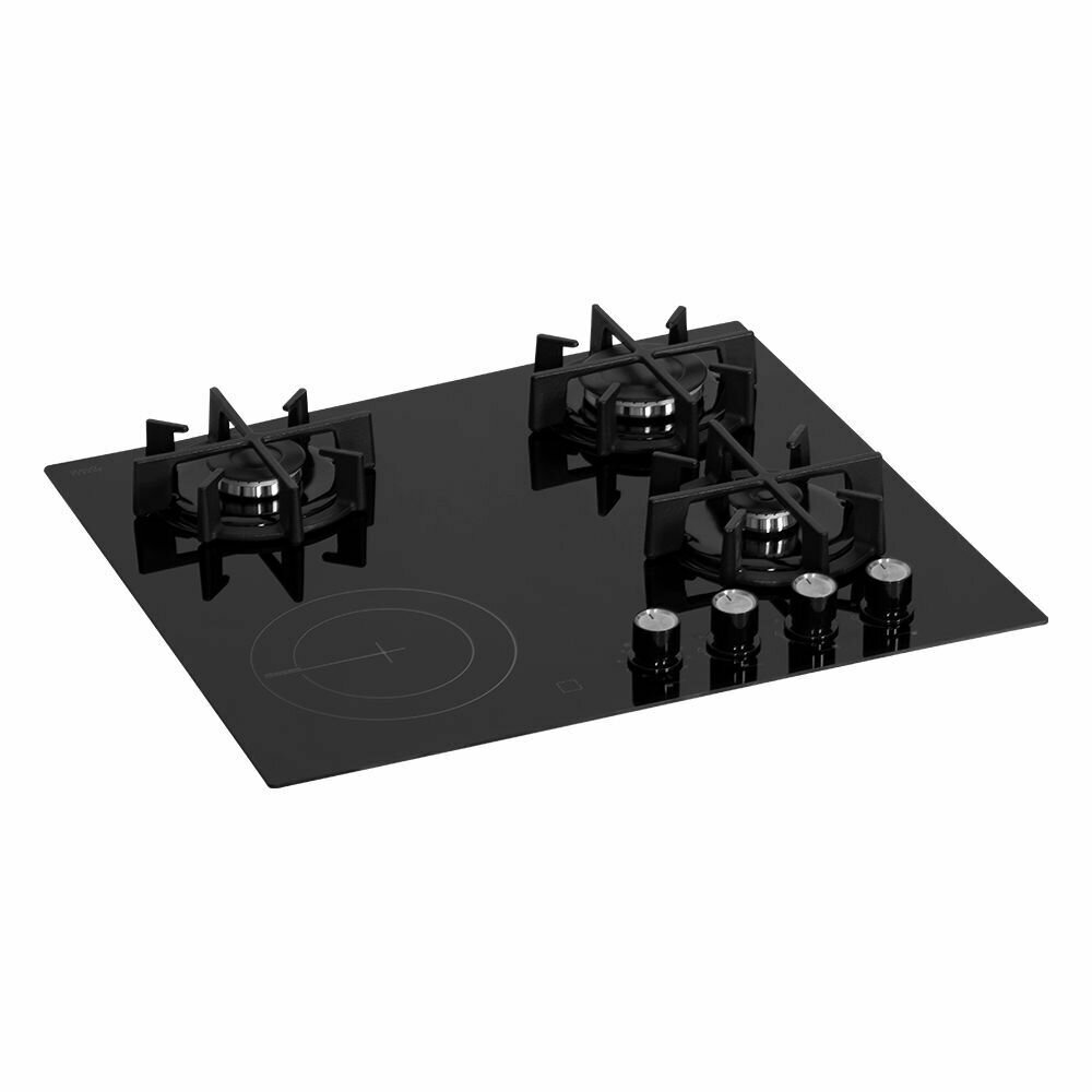 Купить Комбинированная варочная панель Simfer H60N32S522, черное стекло, три газовые и одна электрическая конфорка, 2-х контурная зона нагрева, чугунные решетки, автоподжиг