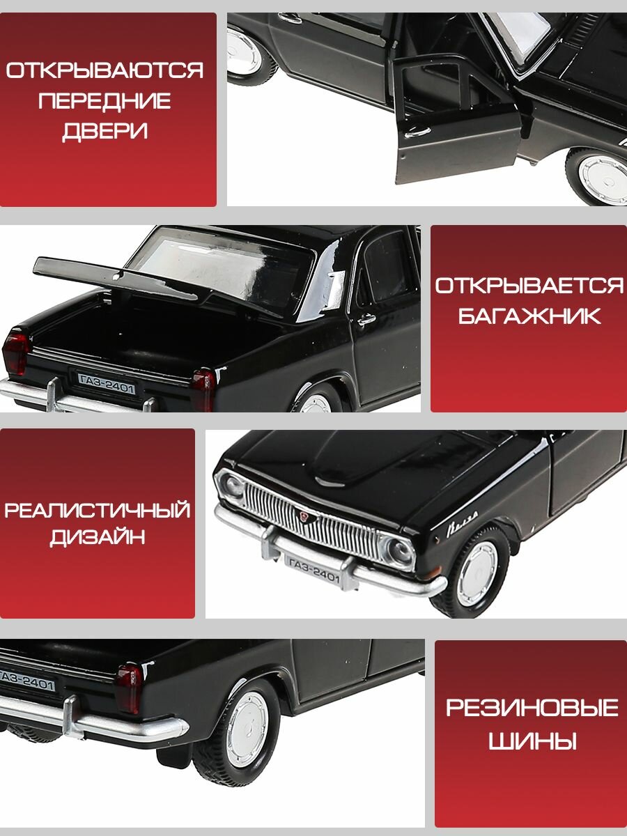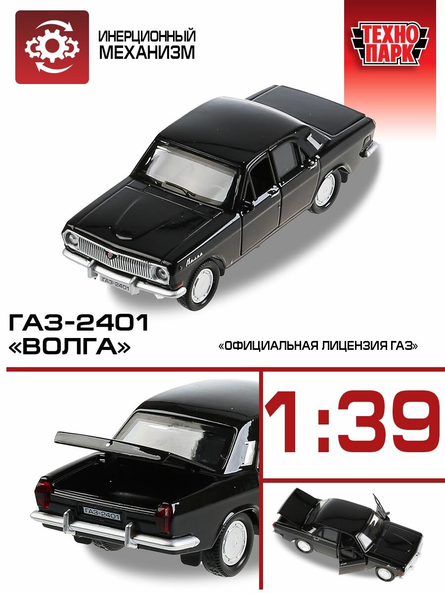 Купить Технопарк 2401-12-BK 299335 Машина металл ГАЗ-2401 волга длина 12 см, двери, багаж, инерц, черный, кор. Техноп