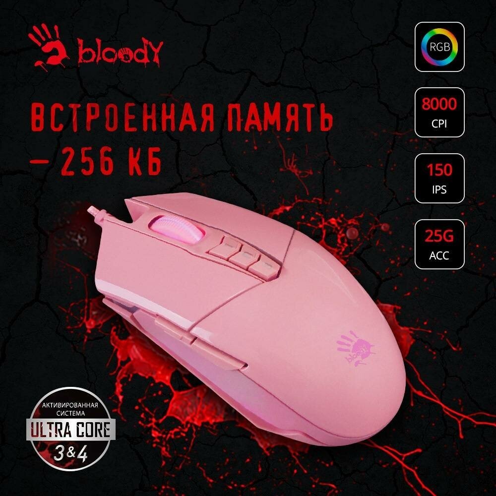 Мышь A4 Bloody P91s розовый оптическая (8000dpi) USB (8but)