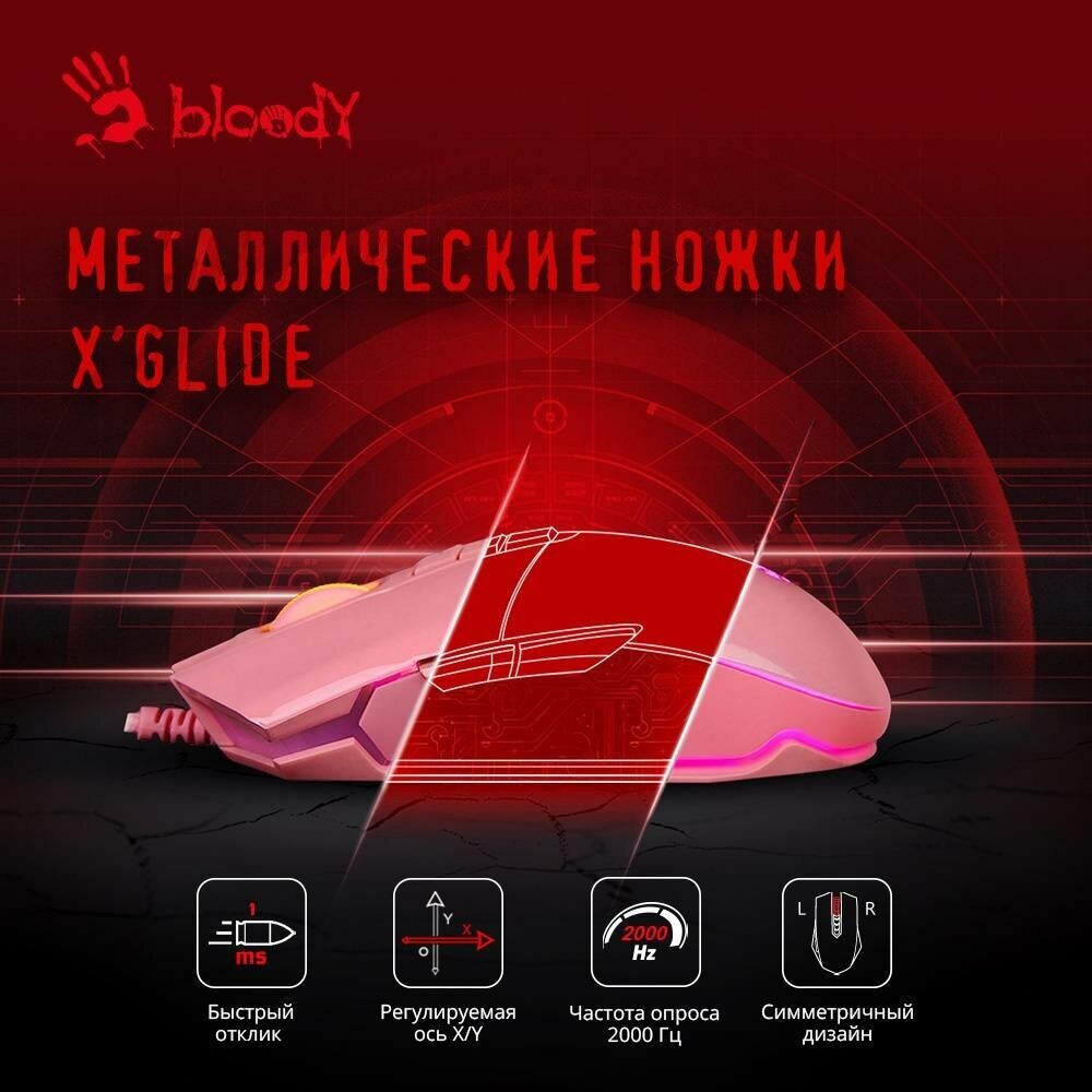 Мышь A4Tech Bloody P91s, розовый