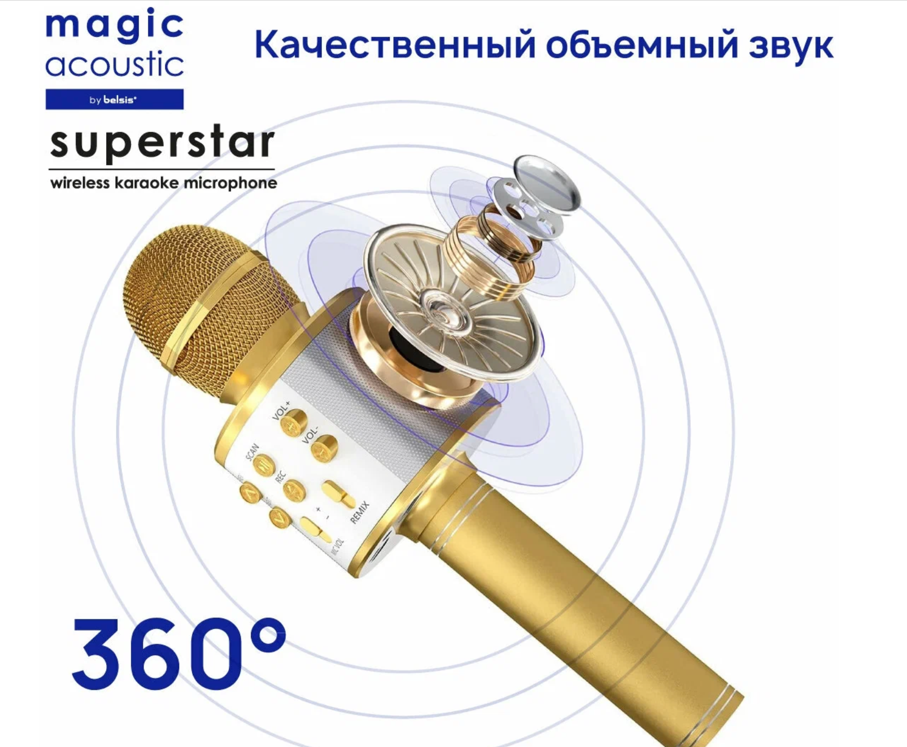 СохранитьКараоке Микрофон Блютуз Magic Acoustic Superstar/Bluetooth микрофон для Девочек Мальчиков Взрослых/Караоке 3-в-1, цвет золотой интересное: