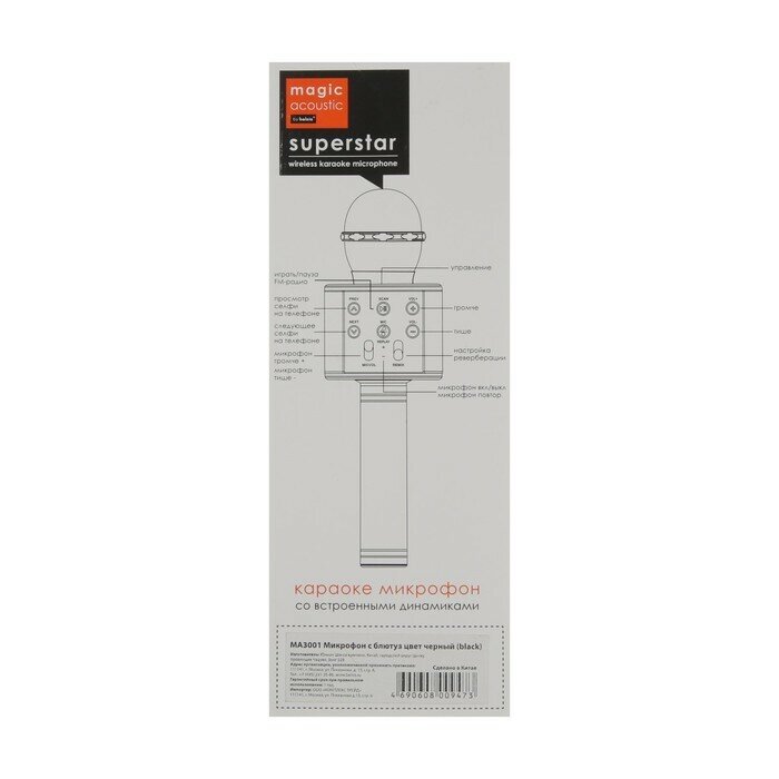 Караоке Микрофон Блютуз Magic Acoustic Superstar/Bluetooth микрофон для Девочек Мальчиков Взрослых/Караоке 3-в-1/MA3001BK Superstar, чёрный