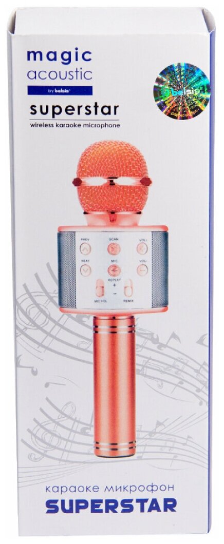 Караоке Микрофон Блютуз Magic Acoustic Superstar/Bluetooth микрофон для Девочек Мальчиков Взрослых/Караоке 3-в-1/MA3001PK Superstar, розовый