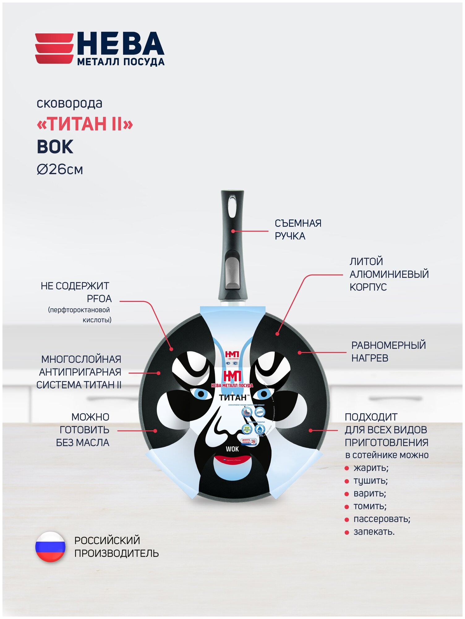 Сковорода-вок НЕВА МЕТАЛЛ ПОСУДА Титан 3126, диаметр 26 см