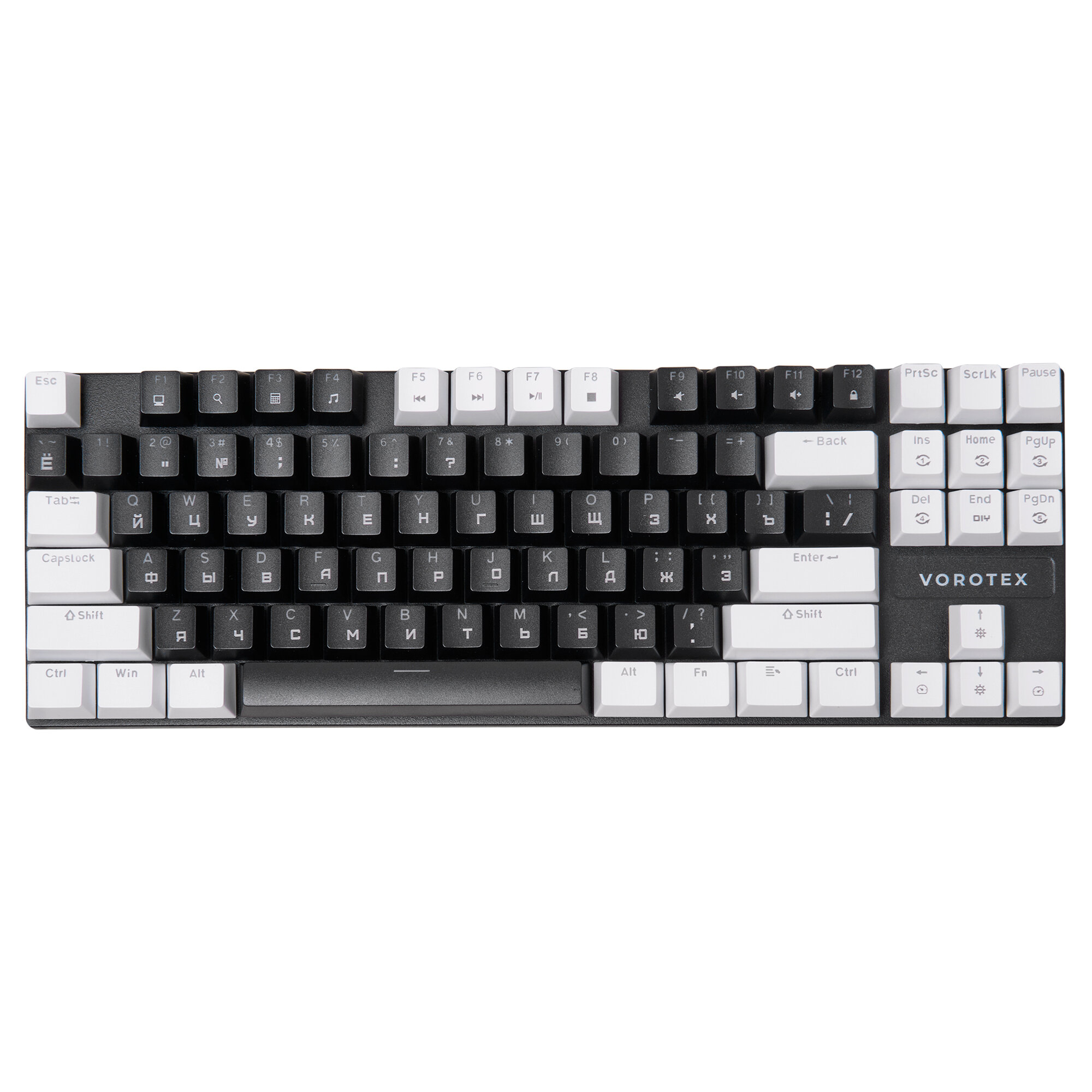 Купить Клавиатура игровая проводная VOROTEX K87S Brown Switch, русская раскладка (Чёрный, белый)