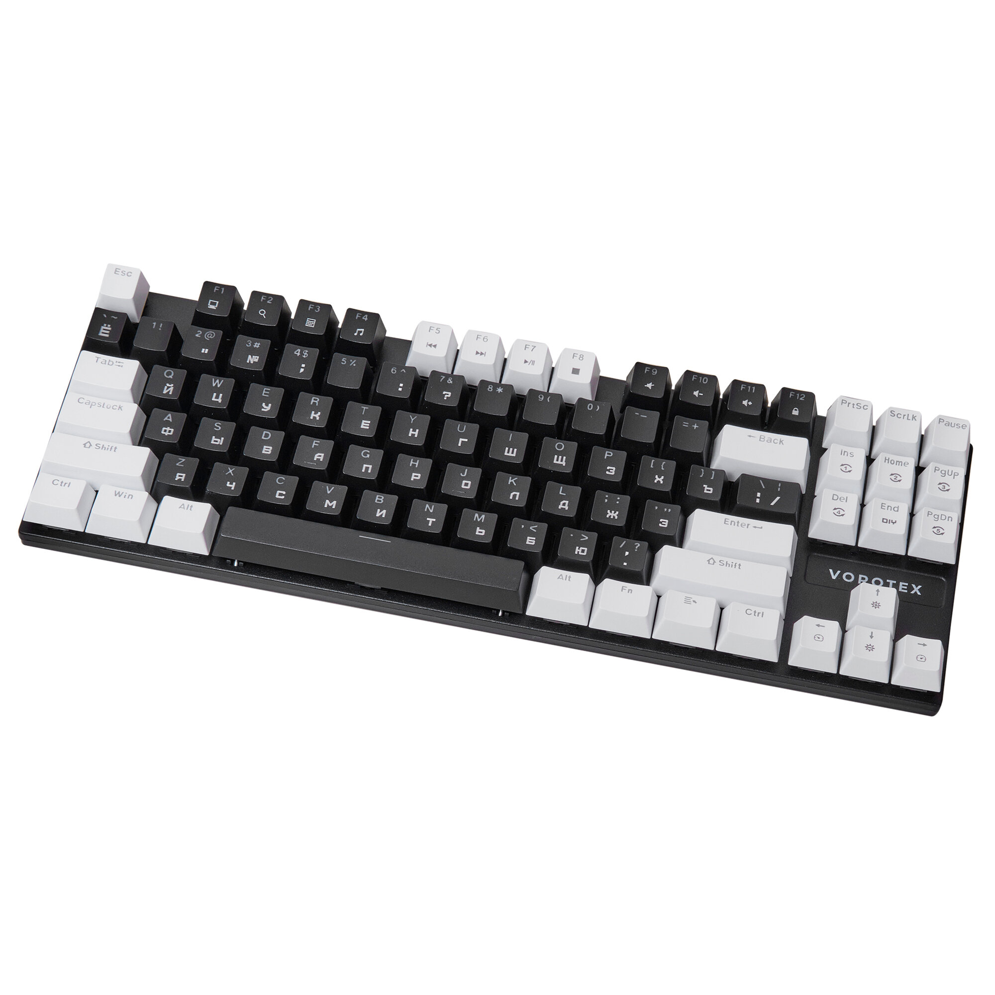 Игровая клавиатура VOROTEX K87S Blue Switch, черный/белый, русская
