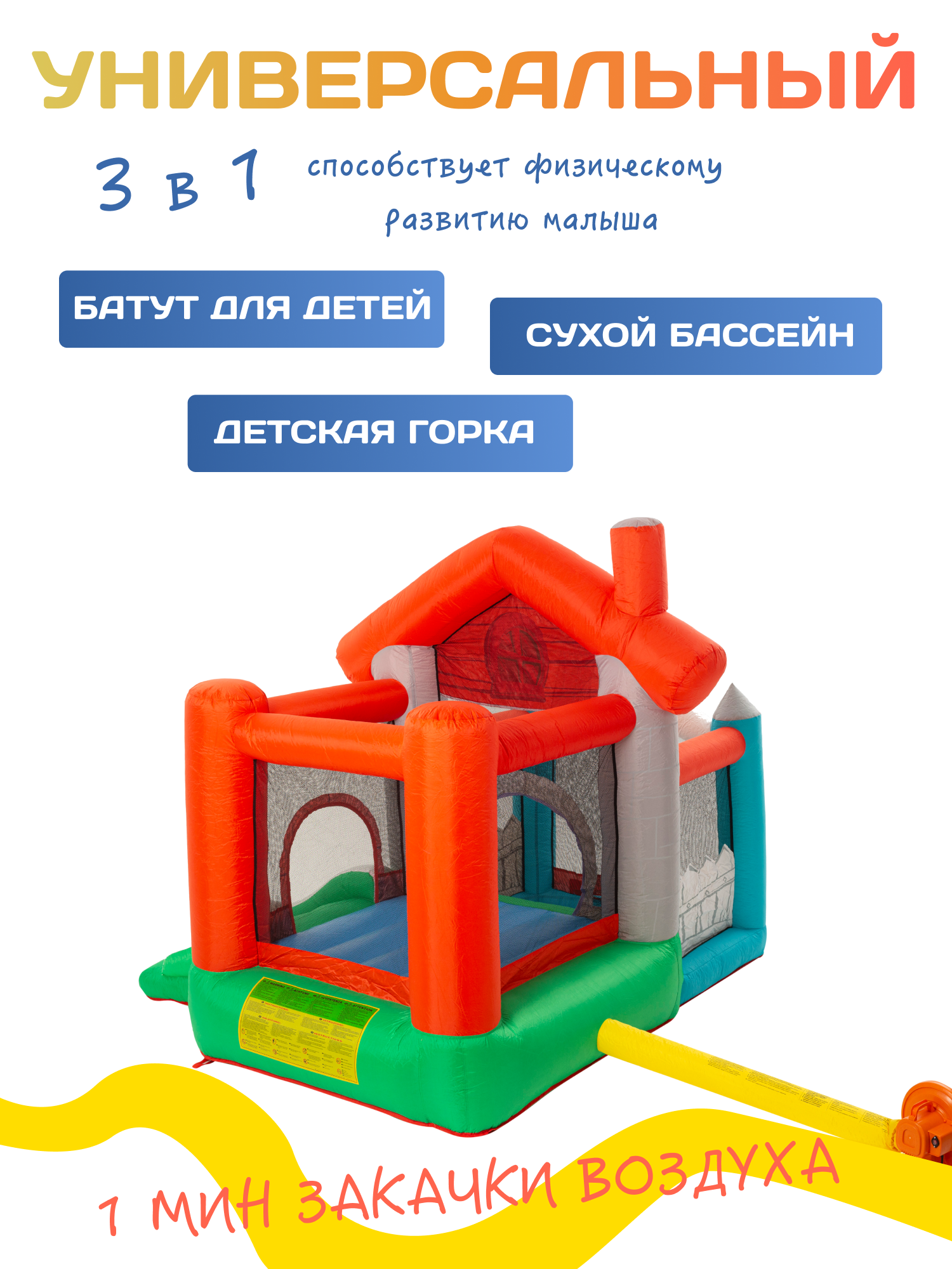 Надувной детский батут для детей в возрасте от 3 до 6 лет