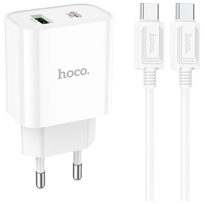 Сетевое зарядное устройство, 1 USB 3.0 QC+1 PD 20W (C80A Plus), HOCO, Type-C to Type-C, белый