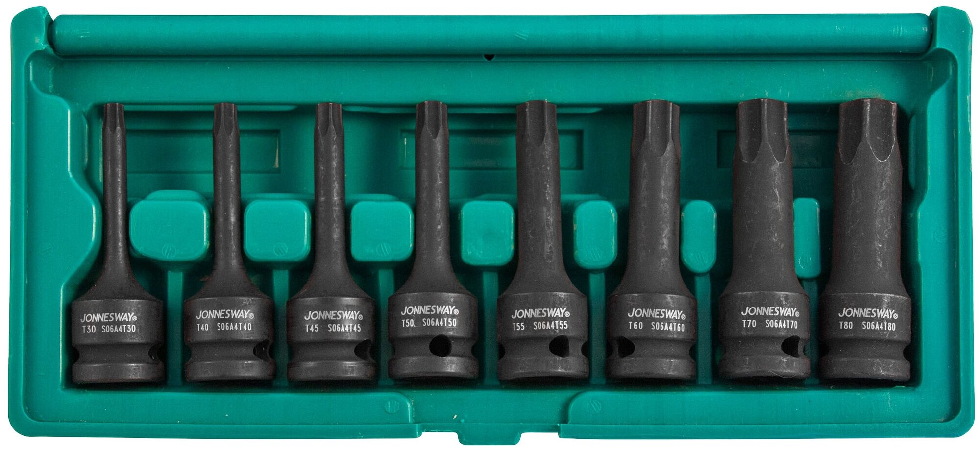 Набор ударных головок Torx 1/2DR", Т30 - T80, 78 мм, 8 предметов Jonnesway S06A408S