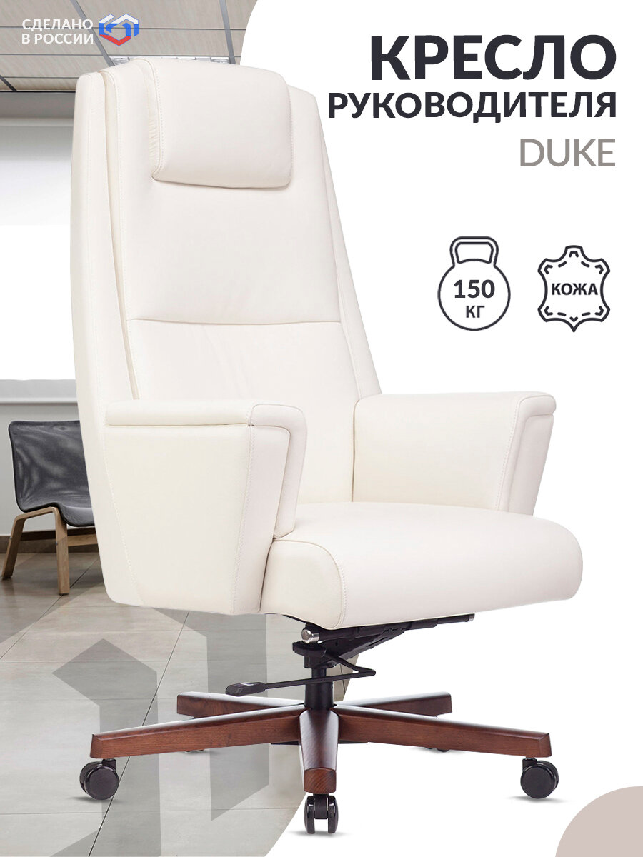 Кресло руководителя Бюрократ DUKE белый кожа крестов. металл/дерево / Компьютерное кресло для директора, начальника, менеджера