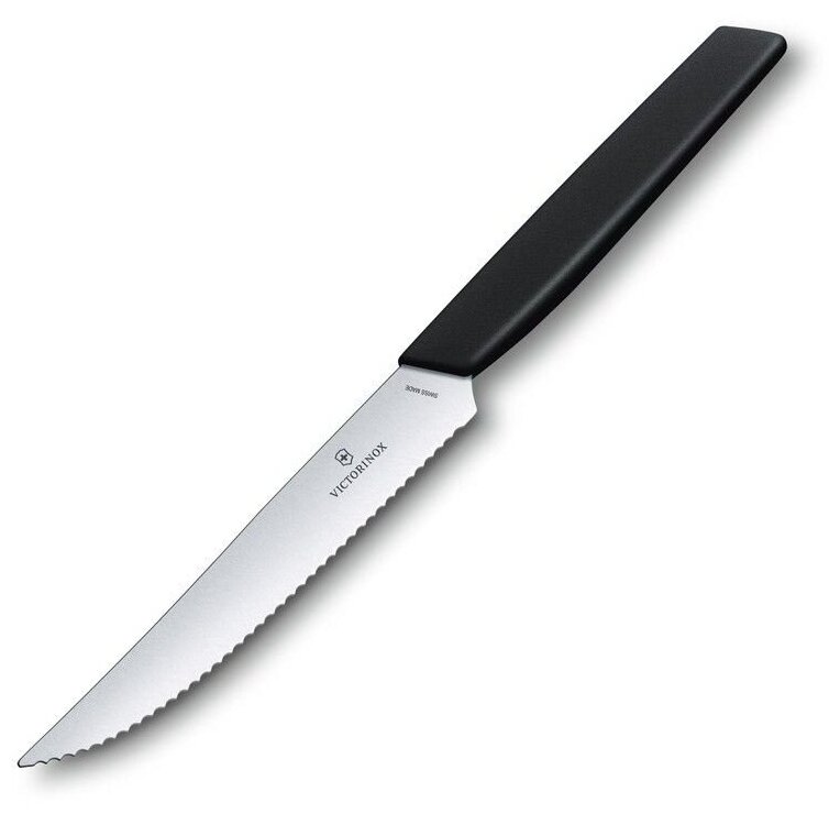 Нож кухонный Victorinox Swiss Modern, столовый, для стейка, 120мм, заточка серрейтор, стальной, черный [6.9003.12w]