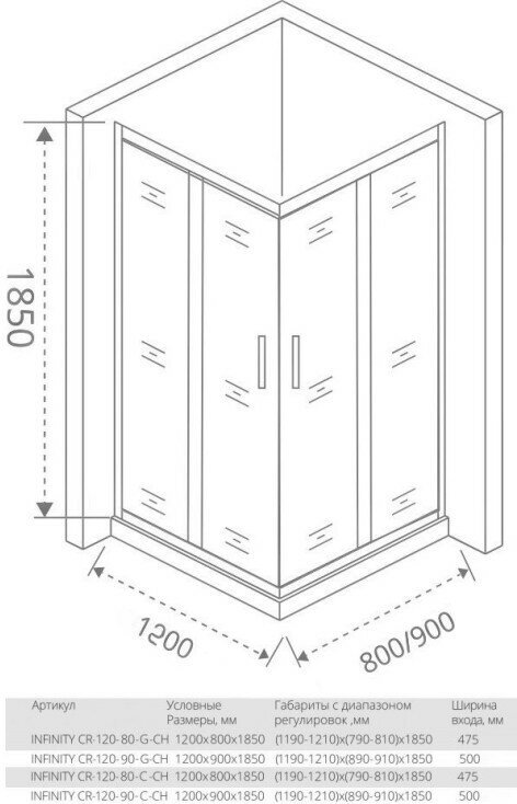 Купить Душевой уголок Good Door INFINITY CR-120-90-C-CH стекло прозрачное/профиль хром