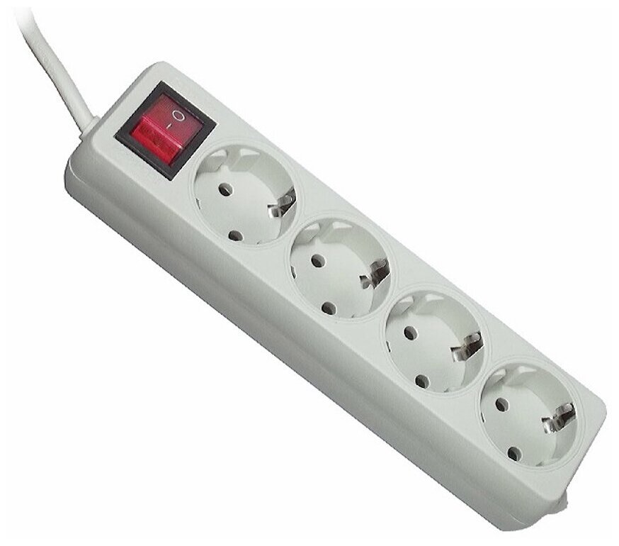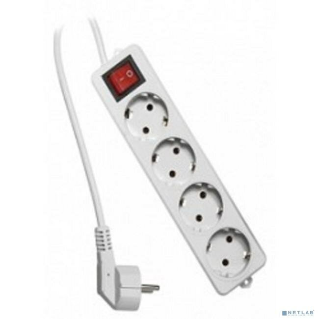 Сетевой фильтр Гарнизон ELB-G4-W-2, 4 евророзетки с выключателем и заземлением, допустимый ток 16А, длина 2м.