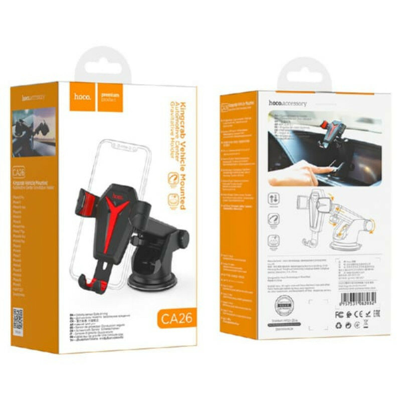 Автомобильный держатель Hoco CA26 Kingcrab (на присоске), черный