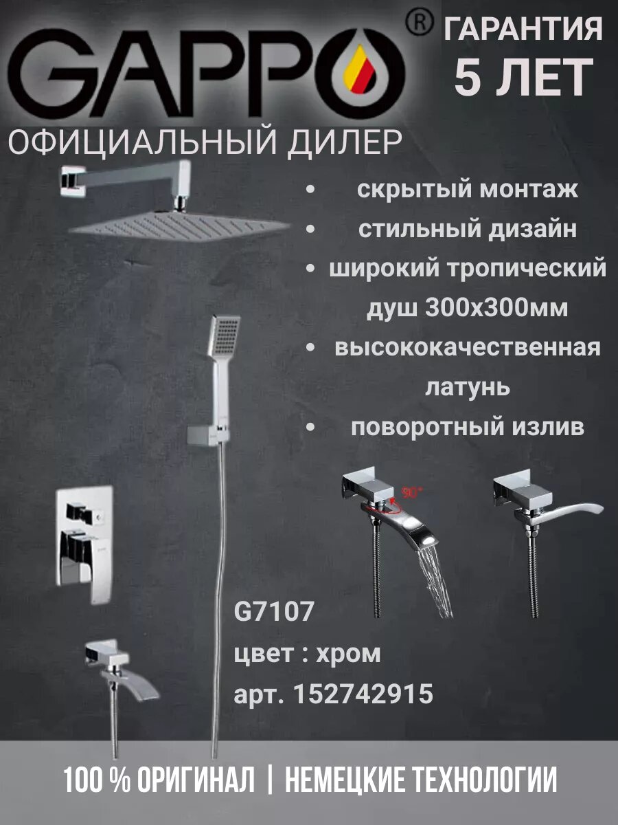 G7107 Душевой комплект Gappo с тропическим душем, встраиваемый, хром