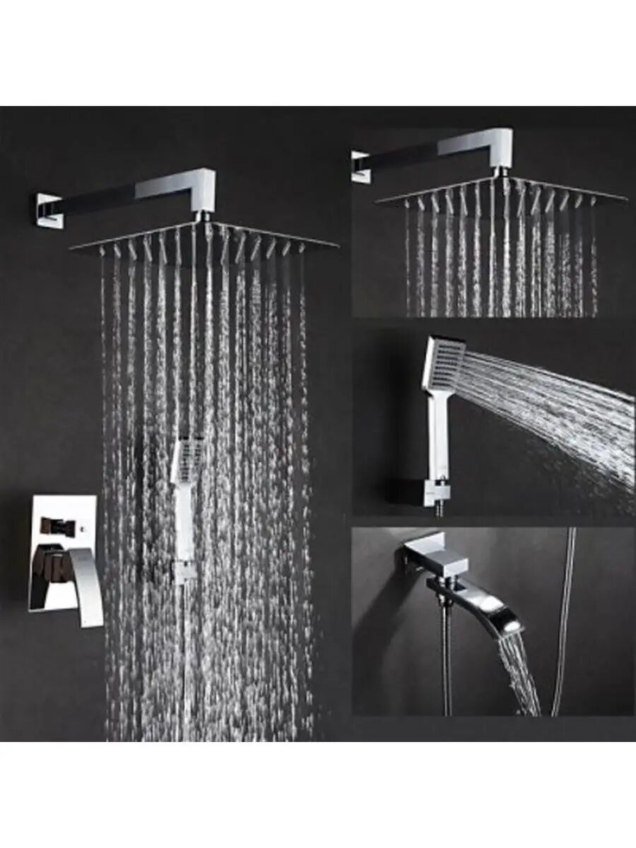 | Комплектация | ручной душ (душевая лейка) / верхний душ (тропический) / Смеситель / излив / душевой шланг / крепление ручного душа / настенный кронштейн |